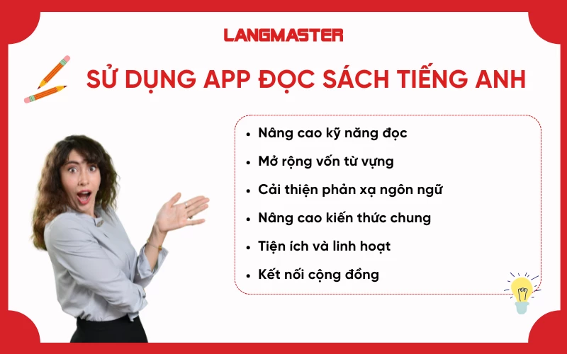 Học tiếng Anh không còn chỉ là việc ngồi trong lớp hay học qua sách vở. Giờ đây, bạn có thể vừa học, vừa chơi nhờ các app đọc sách tiếng Anh. Những ứng dụng này giúp bạn nâng cao kỹ năng ngôn ngữ, mở rộng vốn từ vựng và cải thiện phản xạ một cách hiệu quả. Cùng Langmaster khám phá những app đọc sách tiếng Anh chất lượng, giúp bạn học tiếng Anh một cách dễ dàng và thú vị hơn.