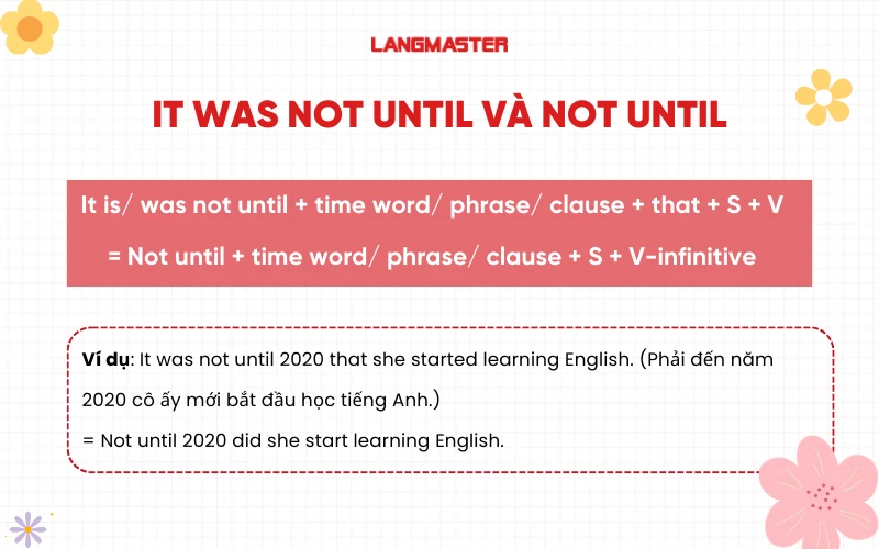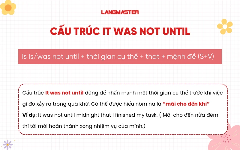 Cấu trúc it was not until xuất hiện rất nhiều trong các bài thi cũng như các tình huống giao tiếp thường ngày. Vậy bạn đã tự tin sử dụng cấu trúc này chưa? Nếu chưa thì hãy cùng Langmaster tổng hợp kiến thức về cấu trúc, cách dùng và bài tập cụ thể ngay trong bài viết này nhé!