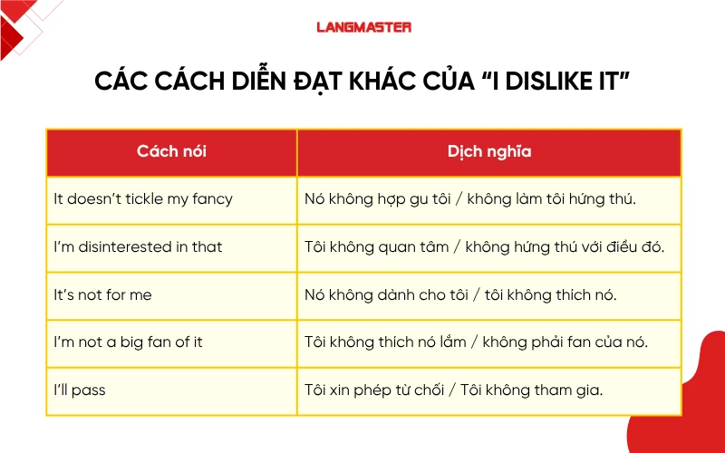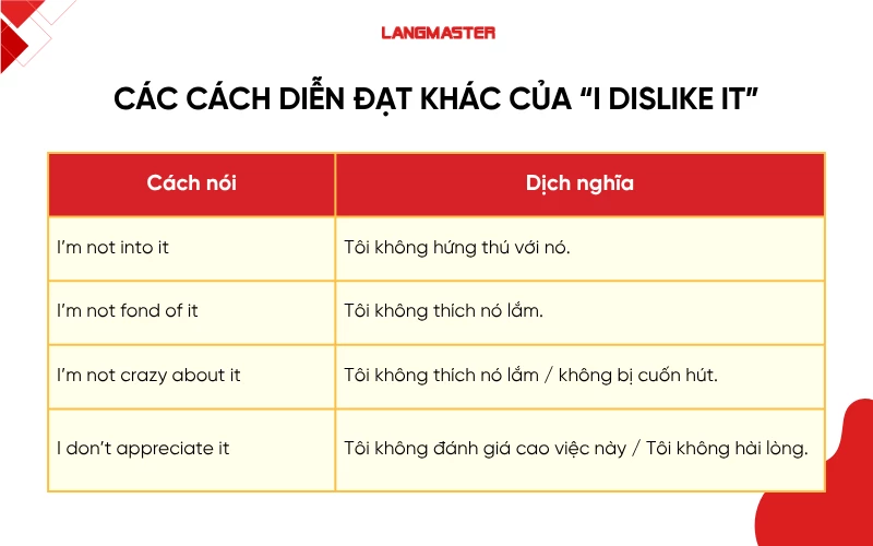 - 5. Các cách diễn đạt khác của “I dislike it”