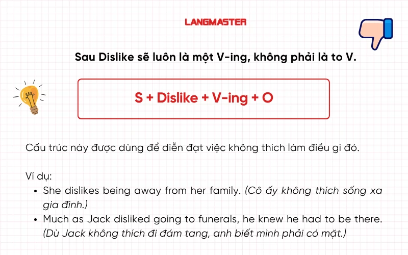Dislike to V hay V-ing? Các cấu trúc thông dụng với Dislike