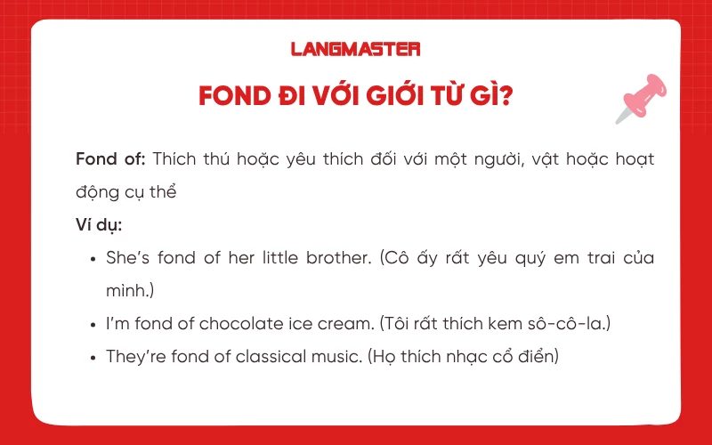 Để thành thạo cách sử dụng fond, bạn cần xác định được fond đi với giới từ gì mới đúng và cấu trúc fond of dùng như nào? Cùng tìm hiểu chi tiết hơn nhé!