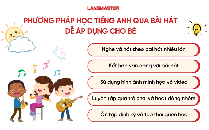 Học tiếng Anh qua bài hát là một phương pháp thú vị và hiệu quả giúp trẻ phát triển kỹ năng ngôn ngữ một cách tự nhiên. Dưới đây là các phương pháp học tiếng Anh cho trẻ qua bài hát, dễ áp dụng tại nhà và mang lại kết quả cao.