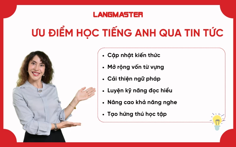 Trong thời đại bùng nổ thông tin, việc học tiếng Anh qua tin tức không chỉ giúp cải thiện ngôn ngữ mà còn nâng cao tư duy toàn cầu, khả năng phản xạ và kiến thức thực tế. Tuy nhiên, để tận dụng tối đa lợi ích từ phương pháp này, bạn cần một lộ trình bài bản và sự hướng dẫn đúng cách. Khóa học tiếng Anh online tại Langmaster chính là lựa chọn lý tưởng.