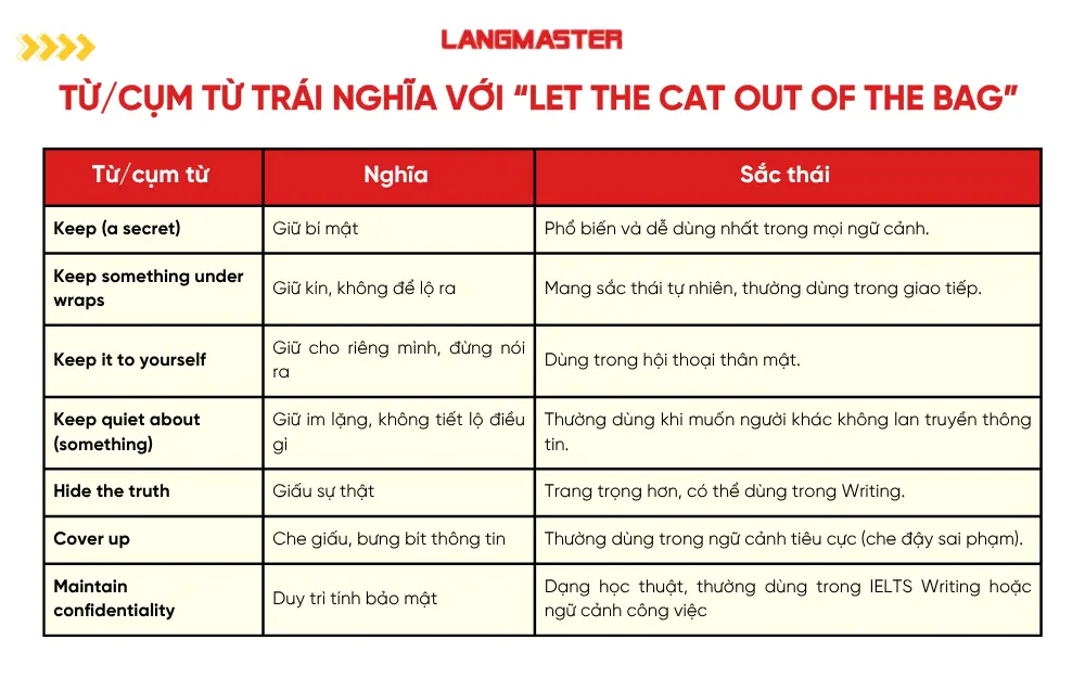 - 6. Từ/cụm từ trái nghĩa với “Let the cat out of the bag”