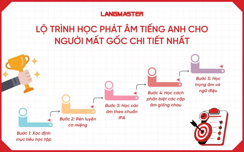 Phát âm chuẩn sẽ là nền móng vững chắc cho kỹ năng nói tiếng Anh của bạn, từ đó có thể tự tin giao tiếp hàng ngày. Tuy nhiên, đối với người mất gốc, việc học phát âm sẽ tương đối khó khăn và không có phương hướng nếu bạn không có một lộ trình học phát âm tiếng Anh hiệu quả. Trong bài viết ngày hôm nay, cùng tiếng Anh giao tiếp Langmaster xây dựng lộ trình học phát âm tiếng Anh để giao tiếp tốt hơn nhé!
