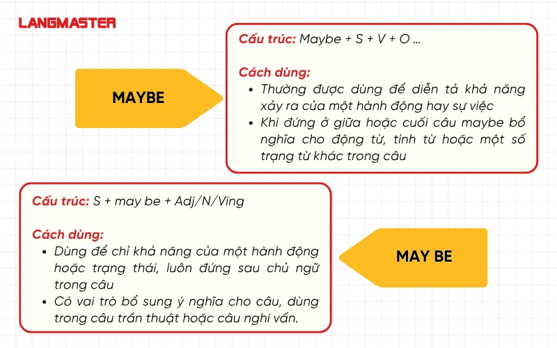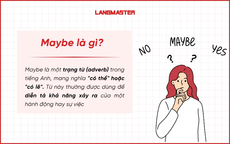 Maybe là cụm từ thông dụng trong giao tiếp tiếng Anh hằng ngày, thế nhưng bạn đã hiểu rõ maybe là gì và cách sử dụng chính xác cụm từ này trong tiếng Anh chưa? Trong bài viết này Langmaster sẽ cùng các bạn tìm hiểu ý nghĩa của Maybe cũng như cách phân biệt Maybe & May be trong tiếng Anh, giúp bạn tránh sử dụng nhầm lẫn trong giao tiếp nhé!
