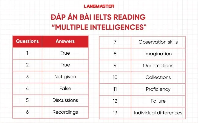 2. Đáp án đề IELTS Reading “Multiple intelligences’’