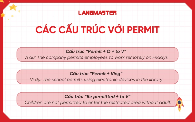 Sau khi đã hiểu rõ sau permit to V hay Ving, bạn cần mở rộng thêm một số kiến thức liên quan đến cấu trúc permit để có thể áp dụng trong nhiều ngữ cảnh khác nhau.