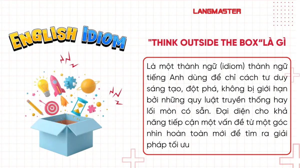 Bạn đã bao giờ tự hỏi tại sao người bản xứ không dùng từ "creative" khô khan mà lại luôn nhắc đến "Think outside the box" trong mọi cuộc họp hay thảo luận? Vậy thực chất Think outside the box là gì, nguồn gốc của nó bắt nguồn từ câu đố nào và làm sao để áp dụng idioms này vào tiếng Anh giao tiếp thật chuyên nghiệp? Hãy cùng giải mã ngay trong bài viết này nhé!