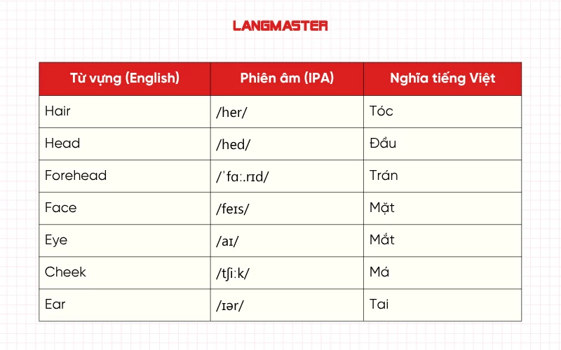 1.1 Từ vựng tiếng Anh trẻ em theo chủ đề các bộ phận cơ thể người
